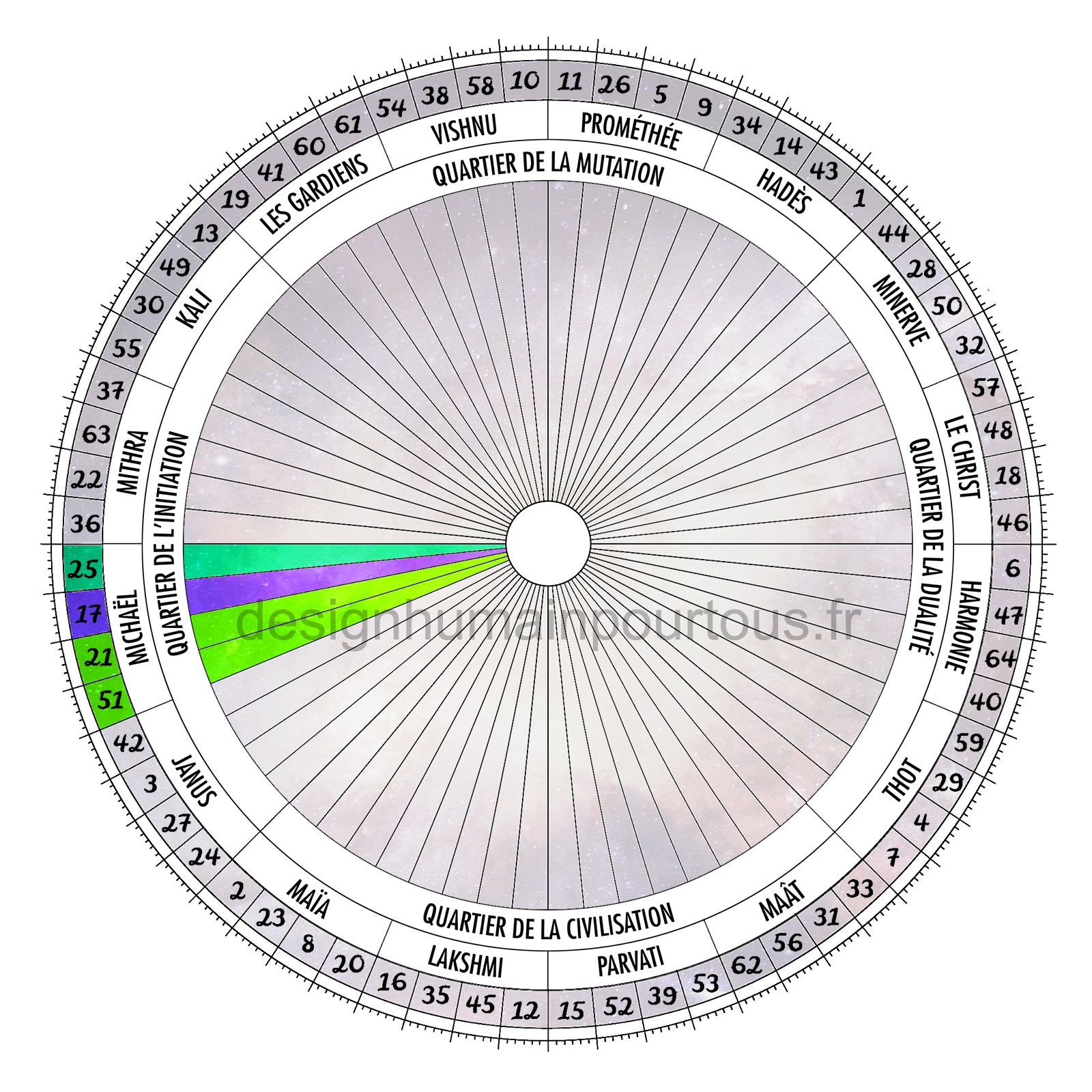 Les personnes qui ont leur Soleil de Naissance dans les portes 25, 17, 21 ou 51, ont pour Archétype Michaël, l’archange chef des forces célestes, vainqueur de Lucifer, protecteur des fidèles et gardien du feu sacré et de la vérité.